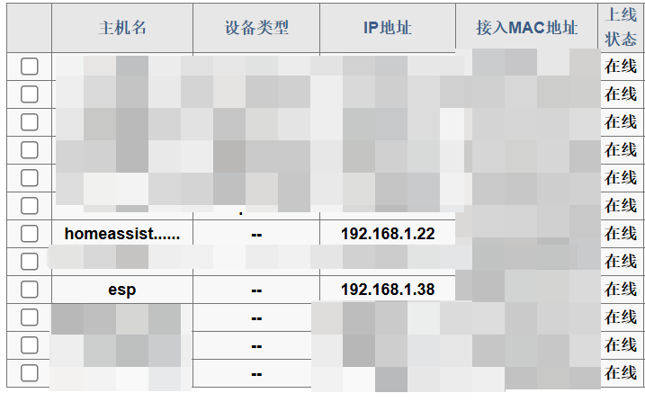 在路由器后台就可以看到ESP这个设备了,记住它的IP地址