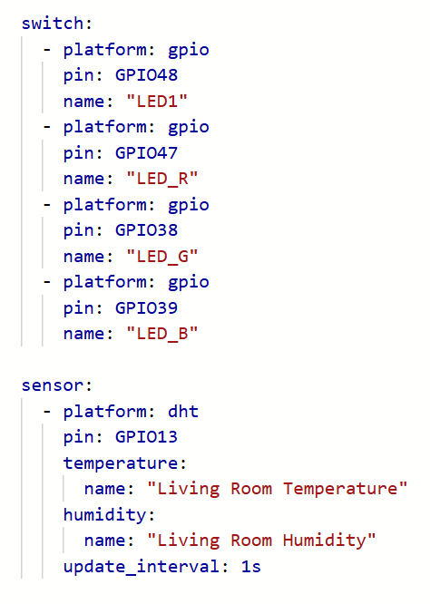 我这里写了几个按键控制LED,以及读取DHT11作为演示,其他的根据需求添加到HA上【编写完成后,也需要重新保存上传】