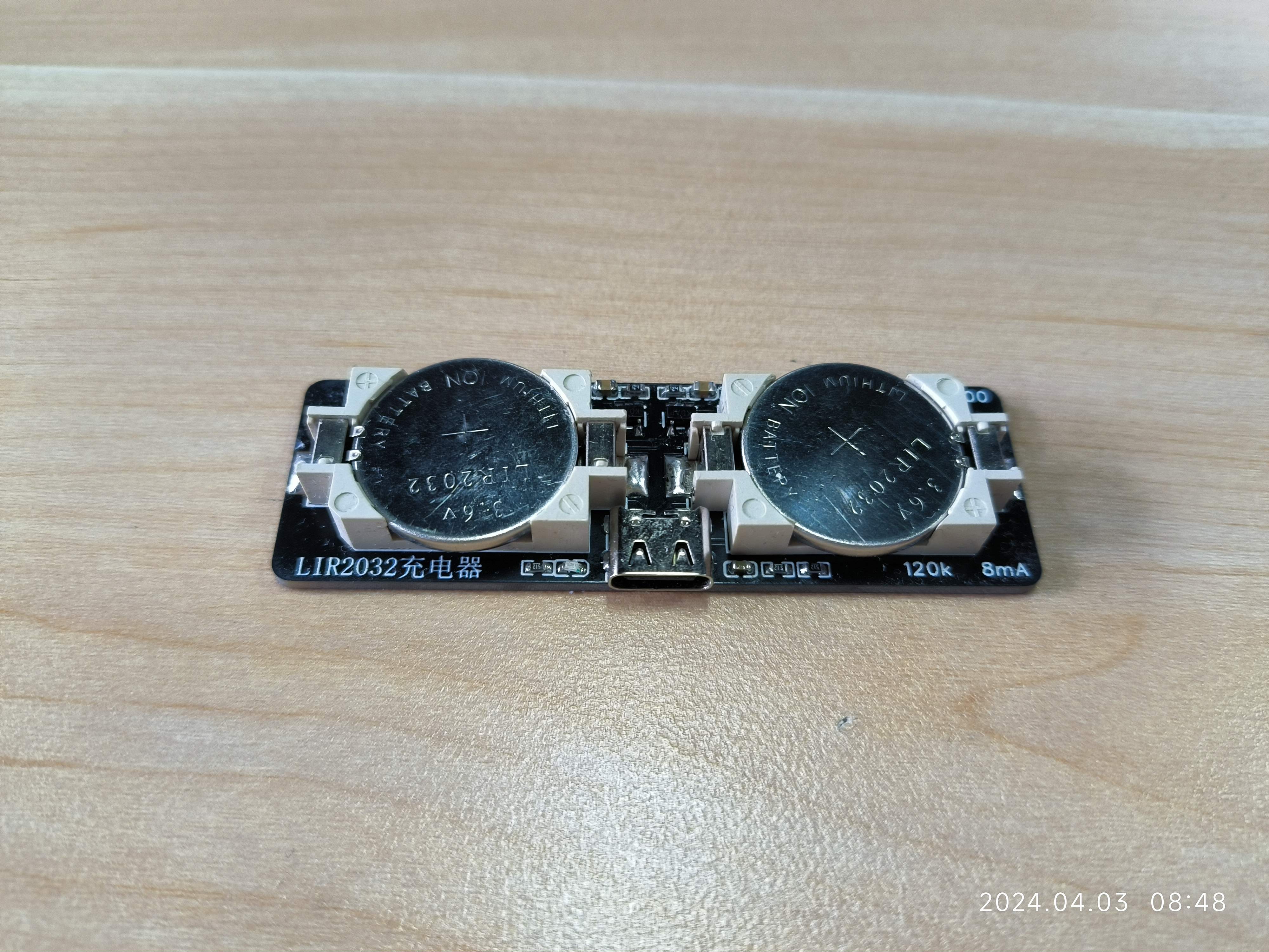 LIR2032推荐充电电流8ma,但是没找到合适的充电管理芯片,一开始没留意,上了TP4054,编程电阻采用120K,充电电流8ma,但是转灯识别异常,充电时间有点长没仔细研究恒流恒压转换和停充状态是否异常,不能转灯就很难受,最后上了MCP73831T,手册说最小电流15ma,实测60k编程的话实际电流12ma,正常转灯