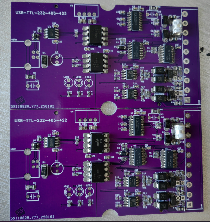 简介:USB转TTL-232-485-422接口,一台设备替代四个串口转接设备,为凌乱的开发桌面整理奉献一份力量。 测试波特率115200bps,无误码。复刻成本:¥10