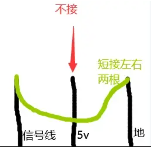 把传感器的三根线中的两根线短接。 上图同款的传感器, 为两边的线短接,中间留空。