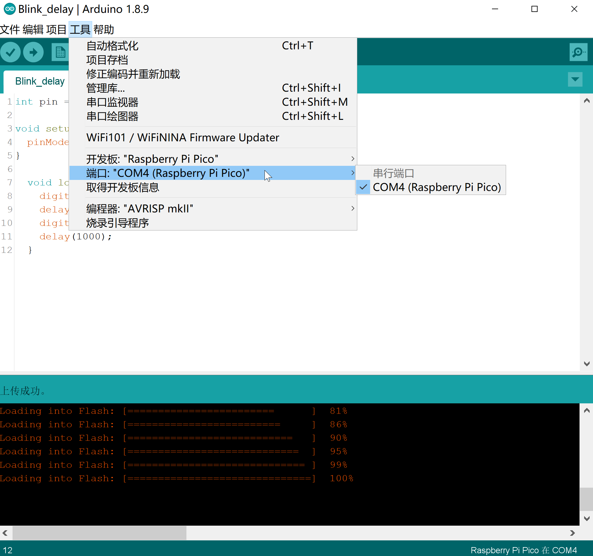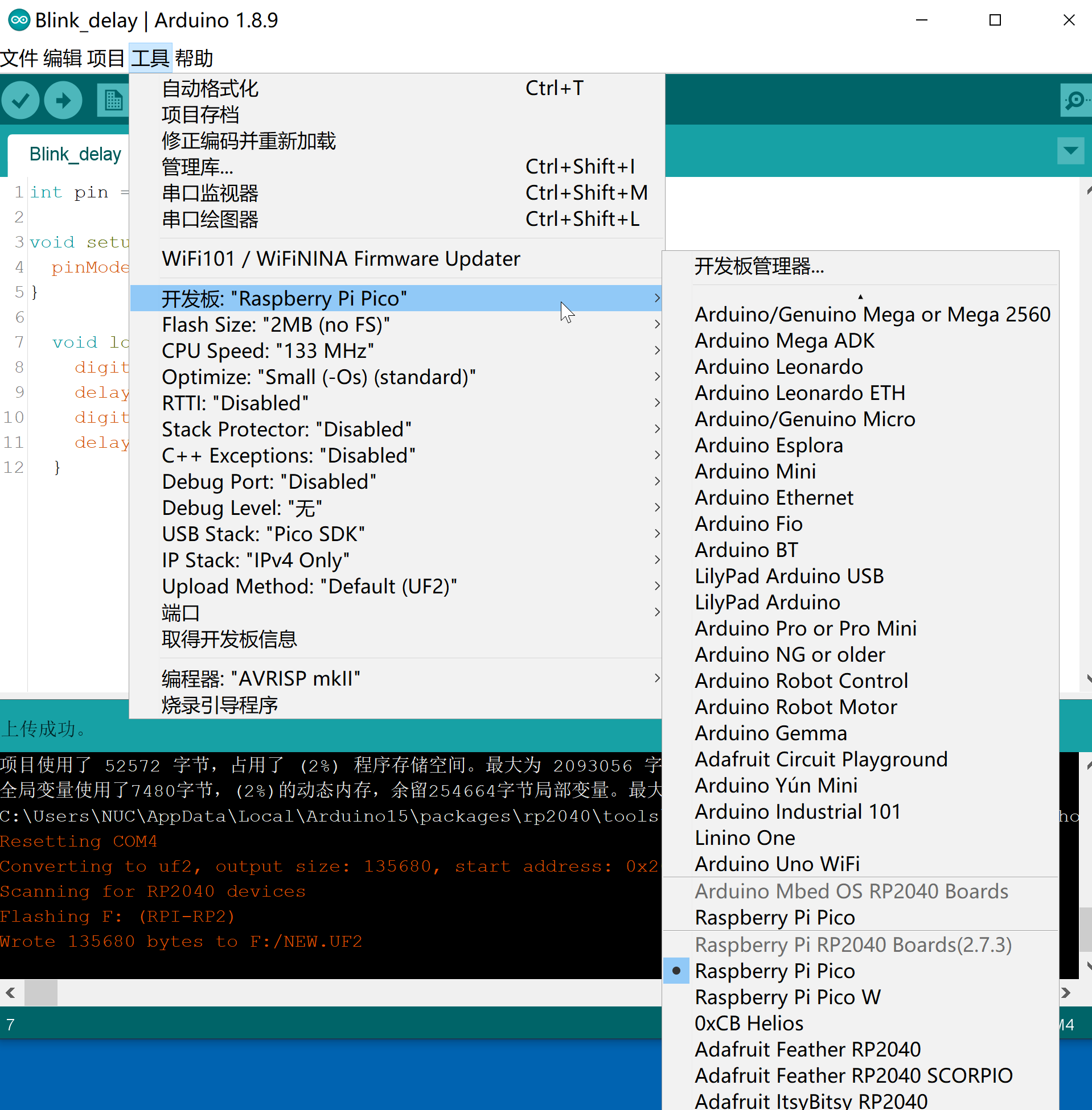引出了部分需要的引脚,可使用C/C++或MicroPython进行开发,示例文件是显示芯片内部温度传感器的温度