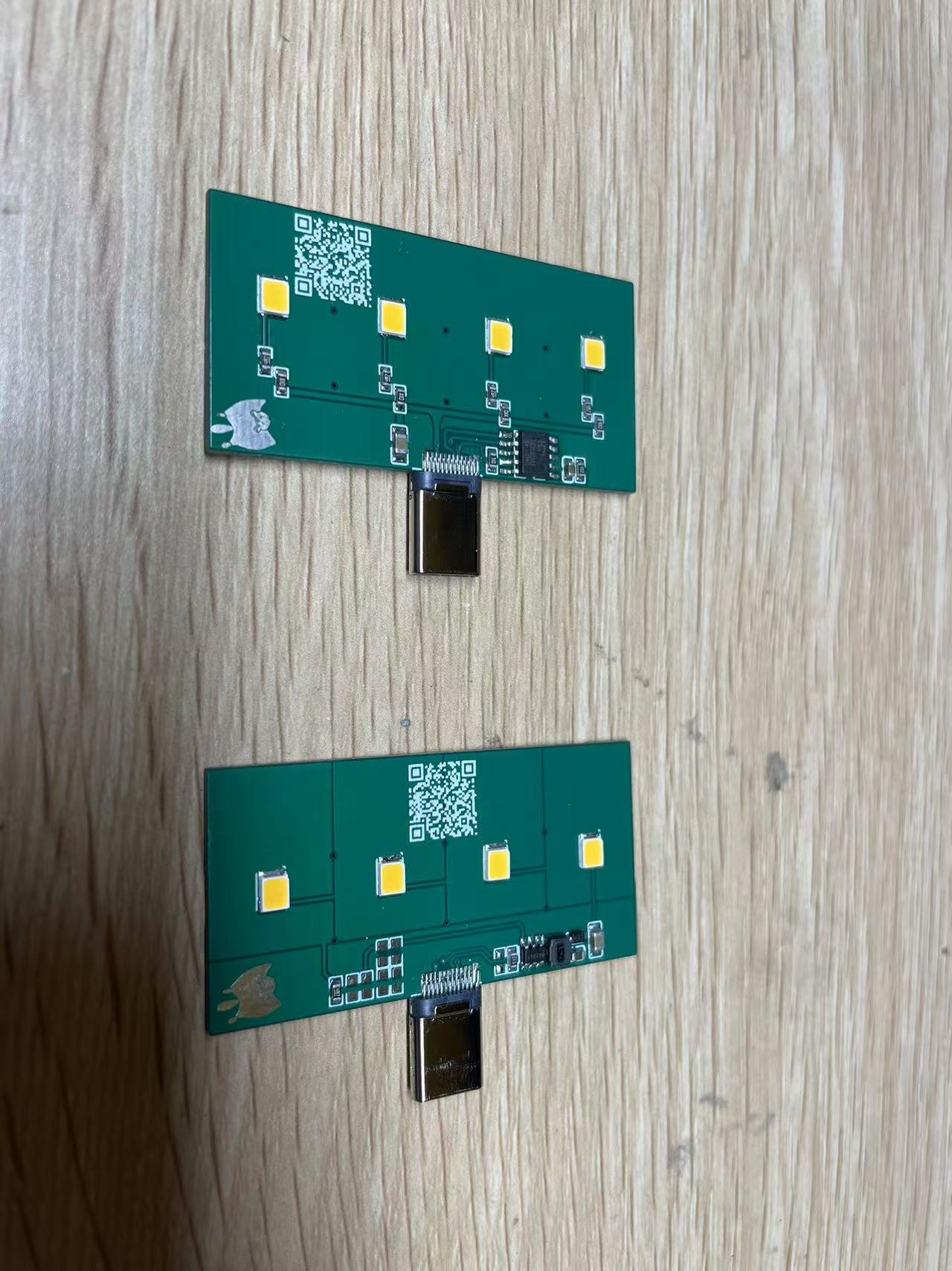 usb-A的led很多了,type-c的还没有,现在的充电宝很多都没有type-a口,于是萌生了做一个的想法;这个是通过pd诱骗到9v的电压,led也是单个9v100ma 1w 2835封装,通过15欧姆电阻限流50ma,此方案电阻限流效率在92%,所以整体功率在1.6w这样,这样灯芯发热控制在60度左右,pcb板子温度45度,接入磁吸充电宝还可以当磁吸电筒使用