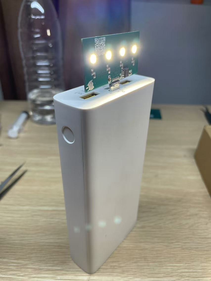 这个是通过c口5v的电压,led是单个3v300ma 1w 2835封装,4个串联,通过sx1308限流127ma,所以整体功率在1.5w这样,这样灯芯发热控制在60度左右,pcb板子温度45度,接入磁吸充电宝还可以当磁吸电筒使用