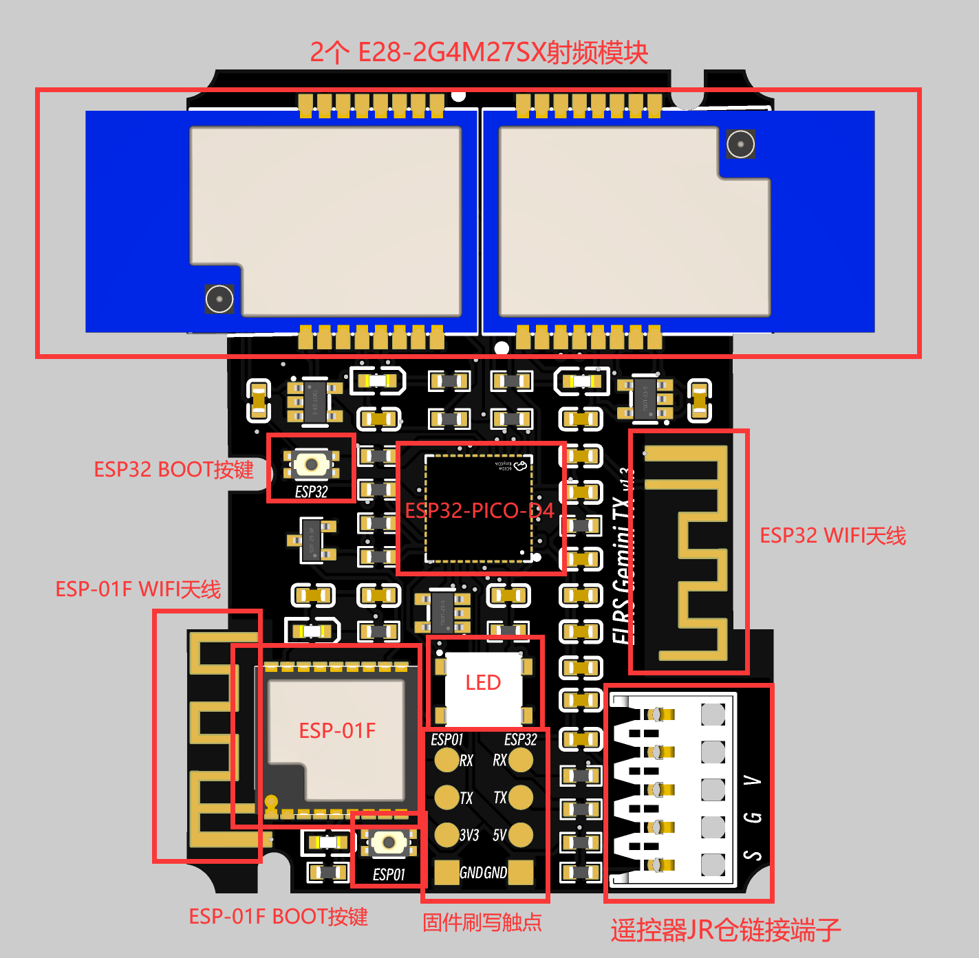 具体的介绍可以看看我的B站视频【ELRS Gemini 双子座高频头,我免费教你做!】 https://www.bilibili.com/video/BV1Ys4y1w7Wf