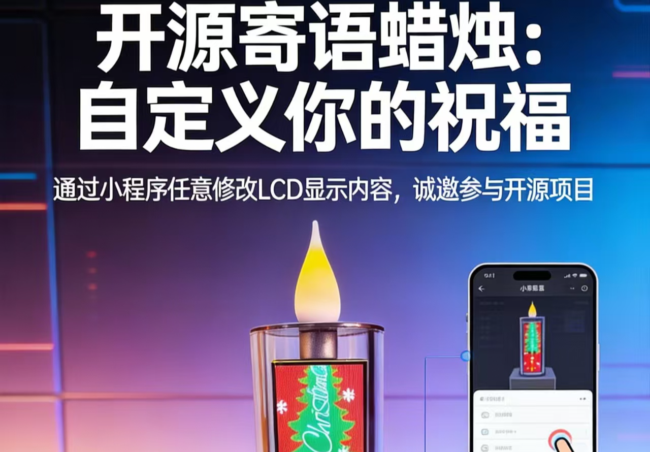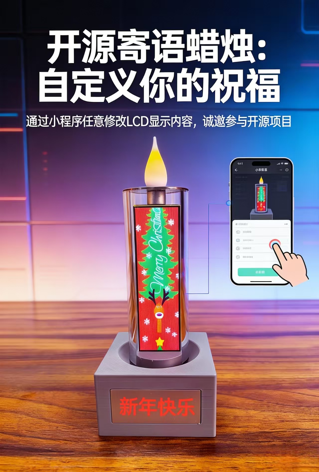 本工程打造WIFI寄语蜡烛,融合 “智能硬件 + 情感交互”,依托 LCD 显示、WIFI通信与小程序,实现扫码发送祝福语、实时动态显示。涵盖硬件、程序、前后端及云服务开发,适用于多种寄语装饰场景。
