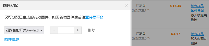 3.选择固件分配,将前面设计好的固件选择分配,发货前立创会对固件进行烧录。