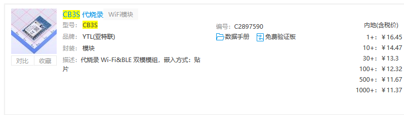 2.前往立创商城查找CB3S 代烧入模块。https://www.szlcsc.com/