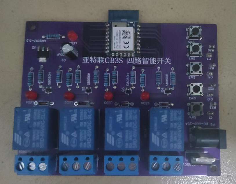 基于亚特联CB3S智能模块制作的四路智能开关。