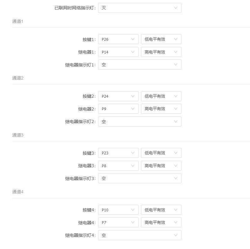 1.进入亚特联平台 - 创建产品 - 设备面板 - 硬件调试(根据自己的需求选择功能,并选择或记住所使用的引脚),本线路板引脚如下:https://iot.yatelian.com/