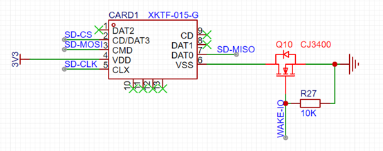 我们通过在TF卡接地侧增加一个NMOS作为开关,切断TF卡在不工作的时的电源从而提高续航。