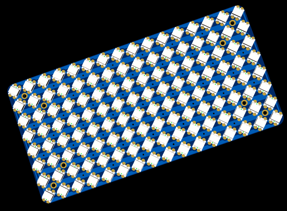 可以选择扩大底板,也可选择多小板拼接,每版64、128灯,较为密集
