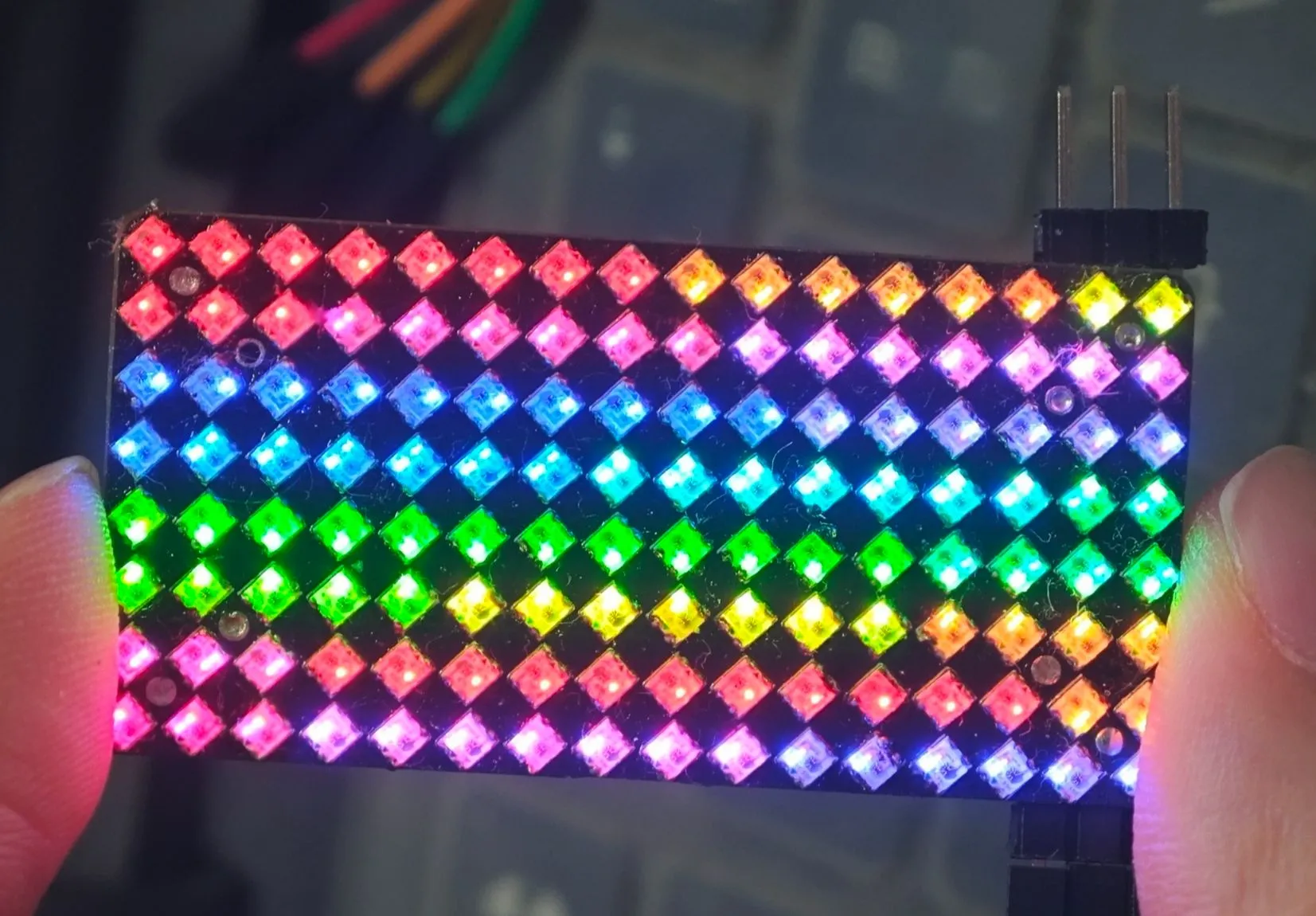 简介:小型的2020尺寸的WS2812B灯板,可拼接,3mm间距;同时附带一个WS2812B的时间换空间的控制方法,移植方便开源协议