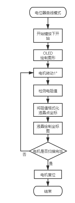 扫描程序主要是通过步进电机驱动定位器,然后在OLED液晶屏幕上实时显示出定位器阻值角度变化的曲线,采用打点法。