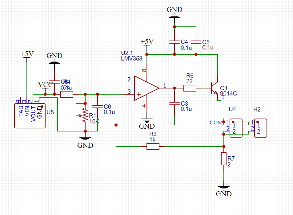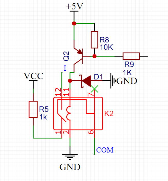 继电器常闭端接1K电阻,VCC为3.3V供电。