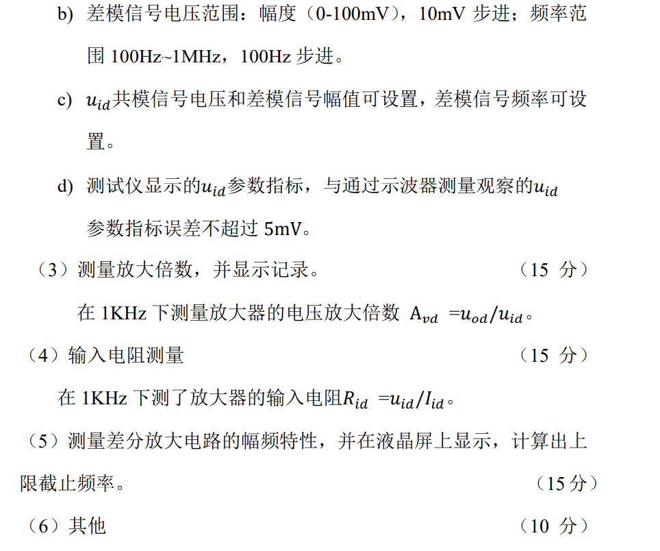 (2)设计差分信号源对所制作的放大器的性能进行测试,产生2 测试所用差分信号,Uid满足一下要求: