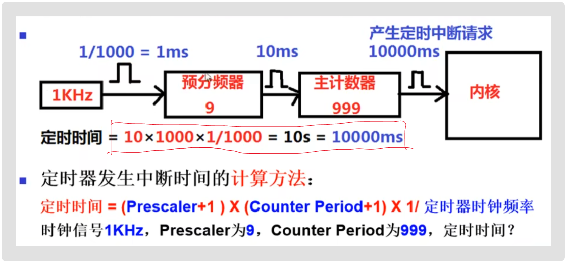 所以用定时器来取代delay 延时,每当计数完成一次 才会进入一次中断处理函数,此时程序进入中断服务函数,但这个时间极其短暂(我认为可以忽略),相比delay程序停下来能获得更好的延时方案。