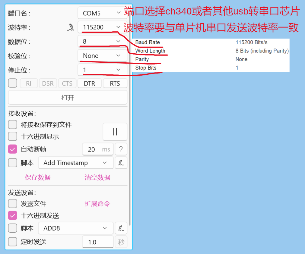 进行串口发送、接收时要清楚串口对应的引脚号。