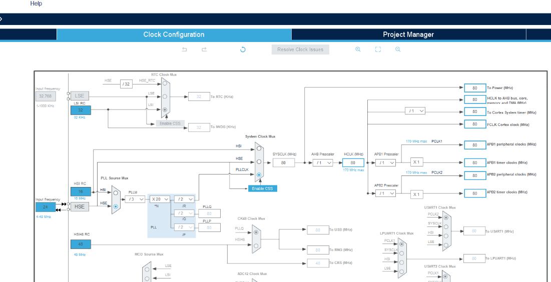 3,时钟配置,先根据需要开启时钟,再对时钟树进行配置