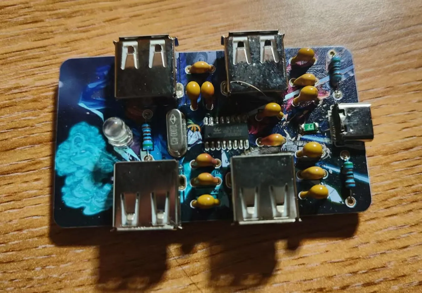 做了一个简单的拓展坞,使用了嘉立创的彩色丝印功能,由于大部分使用直插元器件,焊接之后为避免扎手设计了一个配套的3d打印外壳
