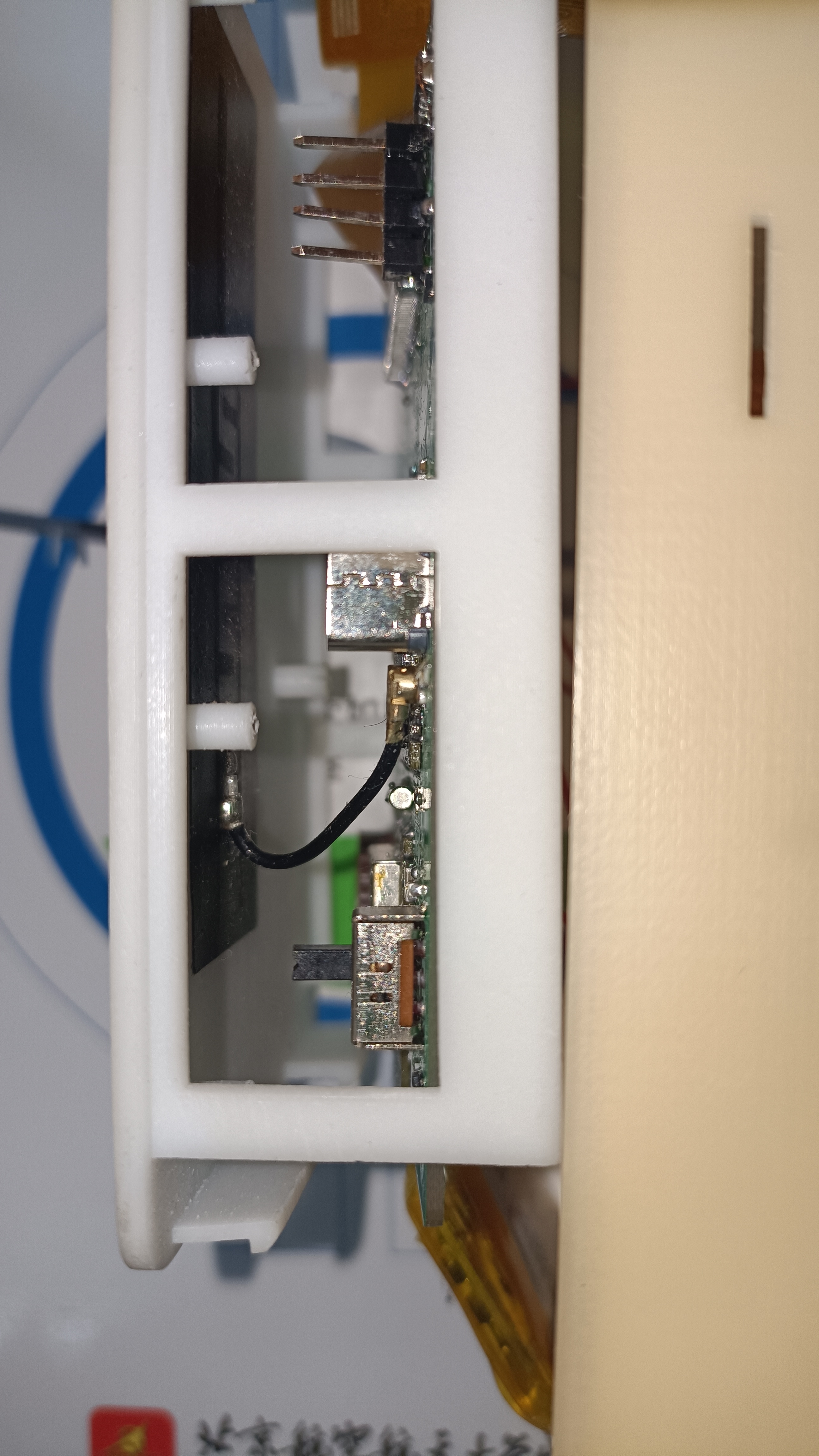 9. 将买到的NB-IOT天线粘贴到后壳上,注意对好位置让天线接头能够到插座。(如果愿意尝试开发GPS功能可以安装GPS天线并粘贴到PCB的GPS区域,不过如果你能到这一步估计也不需要本复刻教程了)