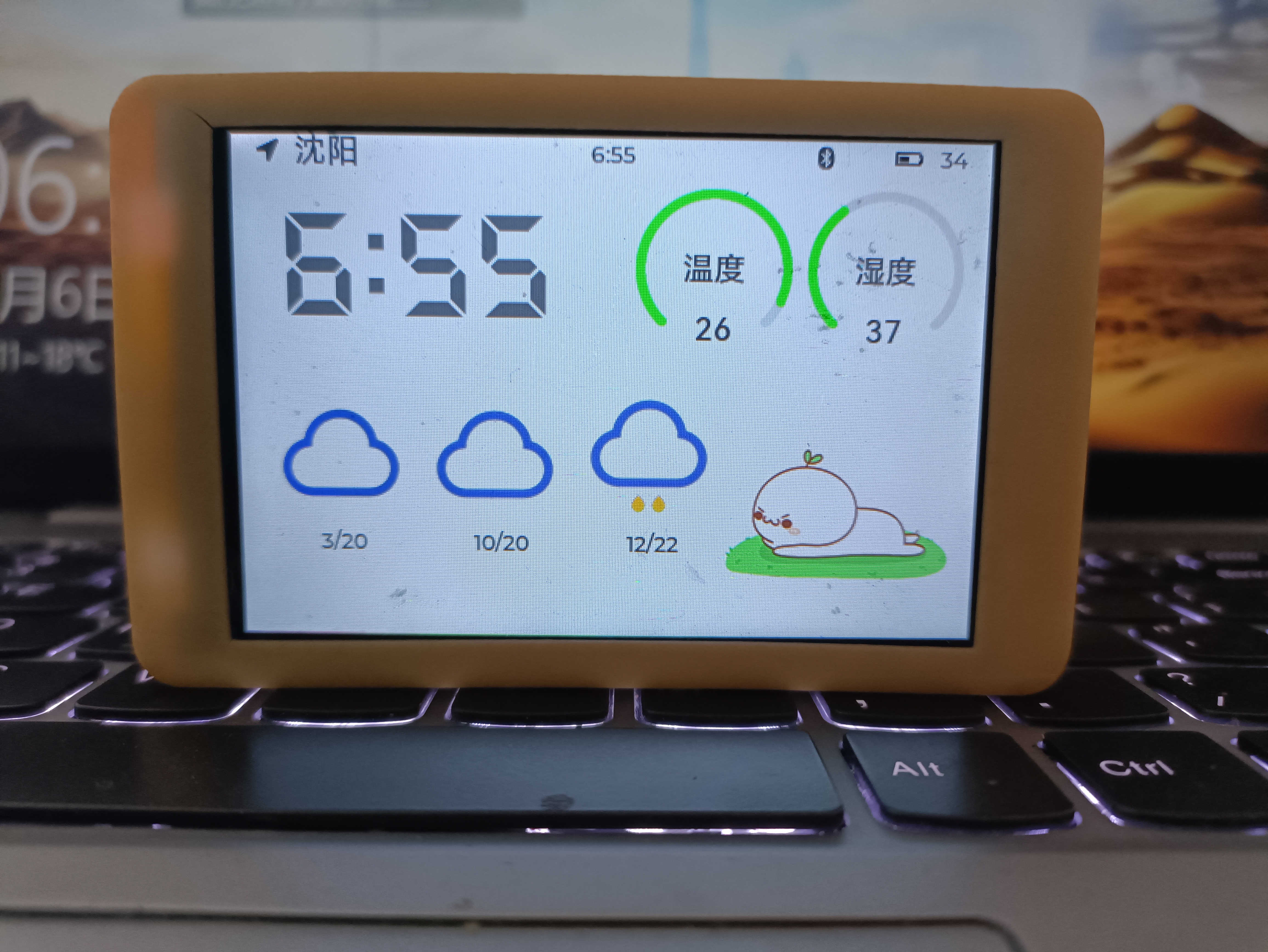 中间键按下后会自动进入低功耗模式,再次按下唤醒。低功耗模式下会关闭全板的3.3V电源,只有STM32和触控芯片仍在上电(STM32为低功耗状态)。每日零点会自动唤醒,联网重新获取时间和天气信息,保存后自动休眠。