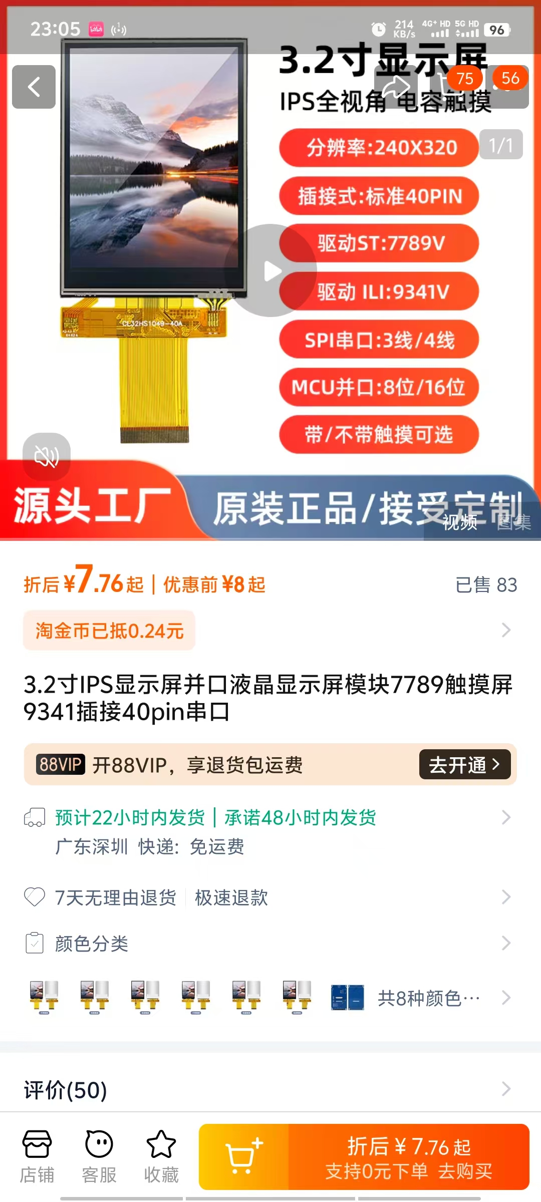 【淘宝】7天无理由退货 http://e.tb.cn/h.gCUBLUKm660vuMp?tk=FQdB3M6IleD MF7997 「3.2寸IPS显示屏并口液晶显示屏模块7789触摸屏9341插接40pin串口」