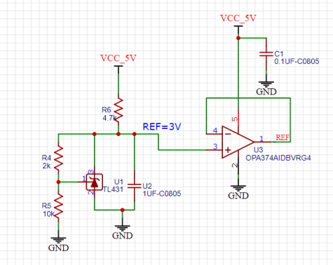 参考源采用TL431输出稳定3V参考,原理图如下: