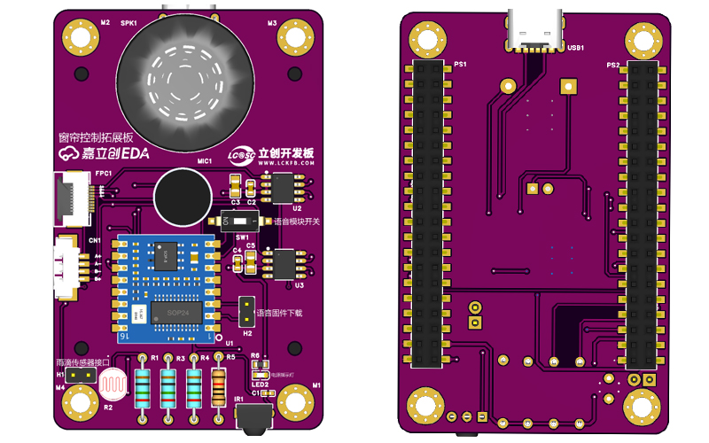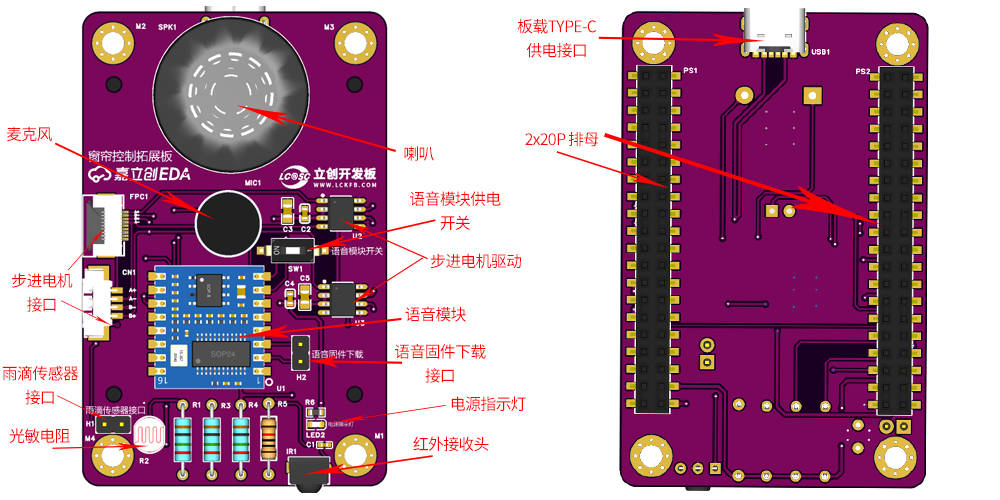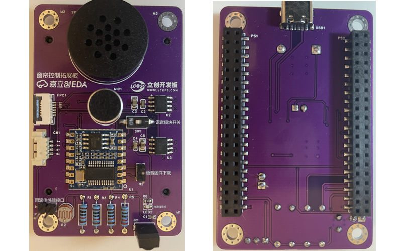 - 拓展版使用了海凌科HLK-V20离线语音模块,实现窗帘控制器的语音控制功能。