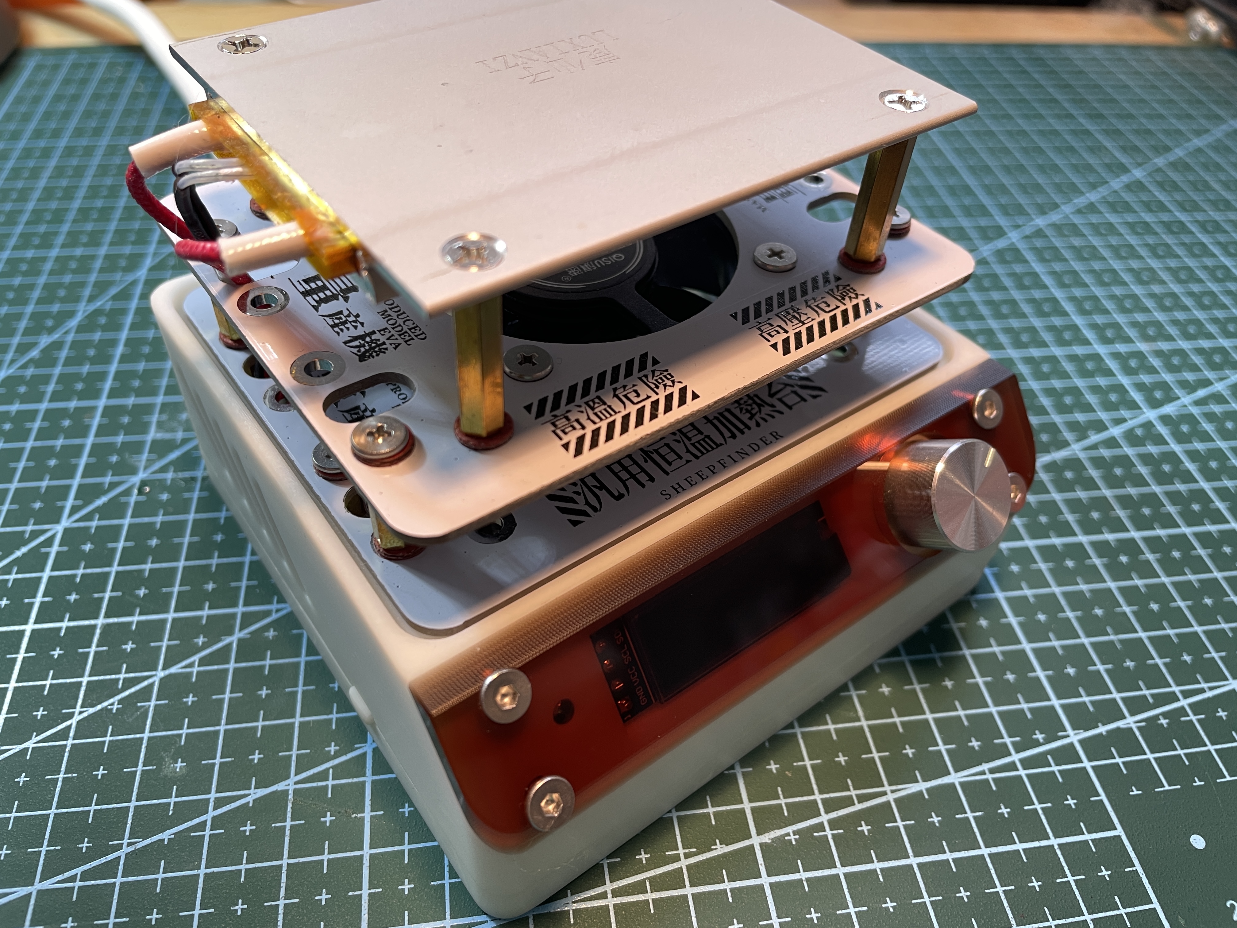 复刻完发现使用的过程中,加热板的热量会通过铜柱传递到下面的外壳来。