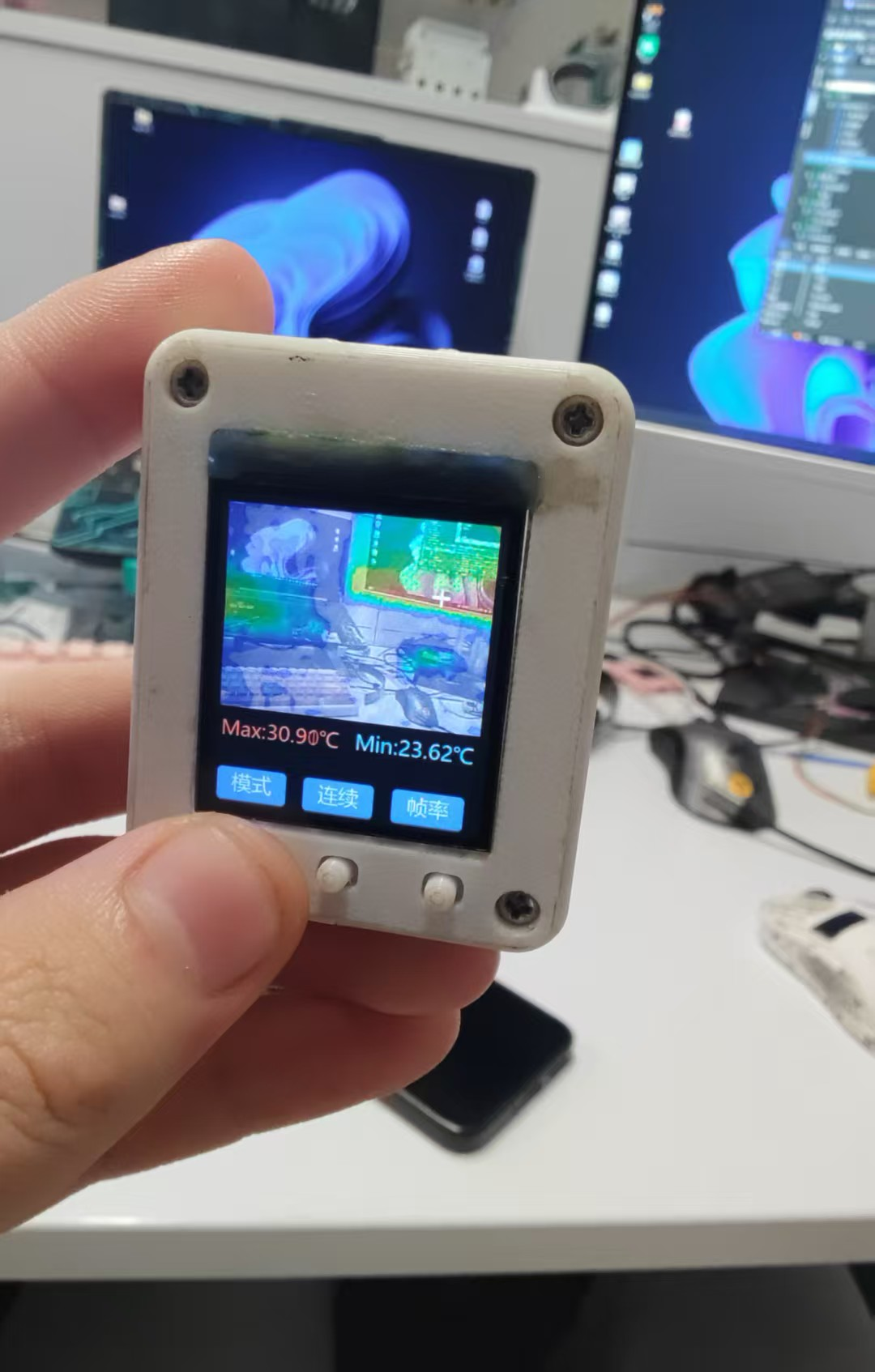 PSS:代码不开了,仅释放演示版固件,仅包含 成像+简易融合双模式、低功耗睡眠(长按中间键休眠,右侧按钮唤醒),烧录偏移0x0 确保flash为32MB