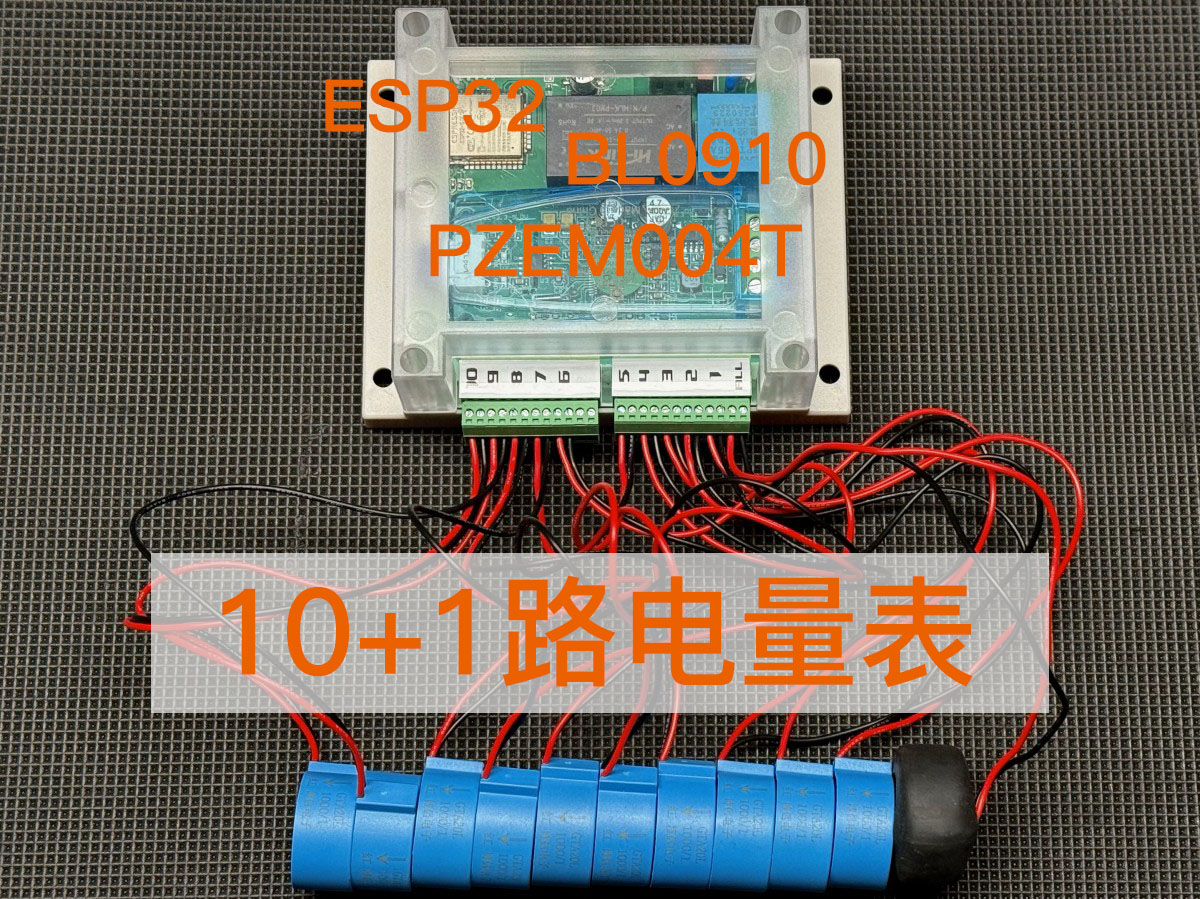 缝合了BL0910和PZEM004T的ESP32主控的用于ESPHOME的10+1路电量表。