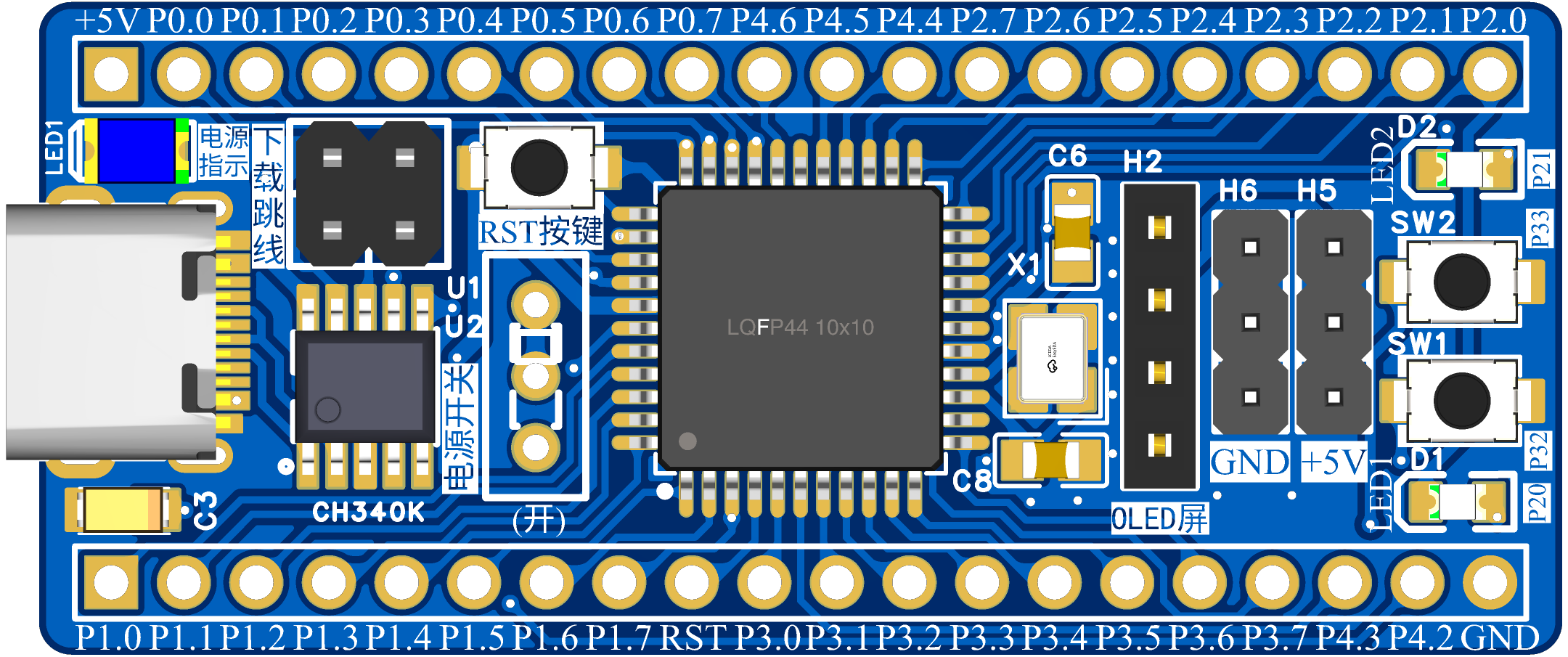 - 电源接口:TYPE-C,贴片16Pin,type-c焊盘已加长,新手烙铁也不难焊,请买2.0cm长脚的type-c母座更牢固。