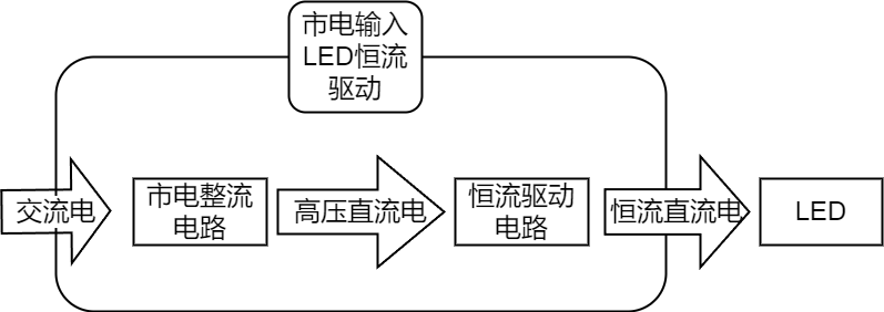 整个电路由恒流输出电路与市电输入电路组成, 电路先通过整流滤波实现85~250V交流电压转高压直流给BP2861, 再通过BP2861开关电路实现恒流输出给LED供电.