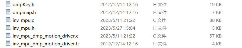 uint8_t MPU_Read_Len(uint8_t addr,uint8_t reg,uint8_t len,uint8_t *buf);这两个函数就是连续写连续读,是DMP库需要用到的,最好将一下几个文件全都移植过去,不然极易出错:
