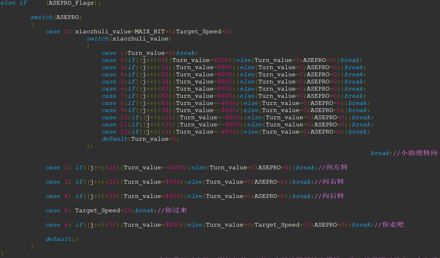 6.避障模式:可以通过代码看出在测出距离后根据距离的不同控制不一样的速度: