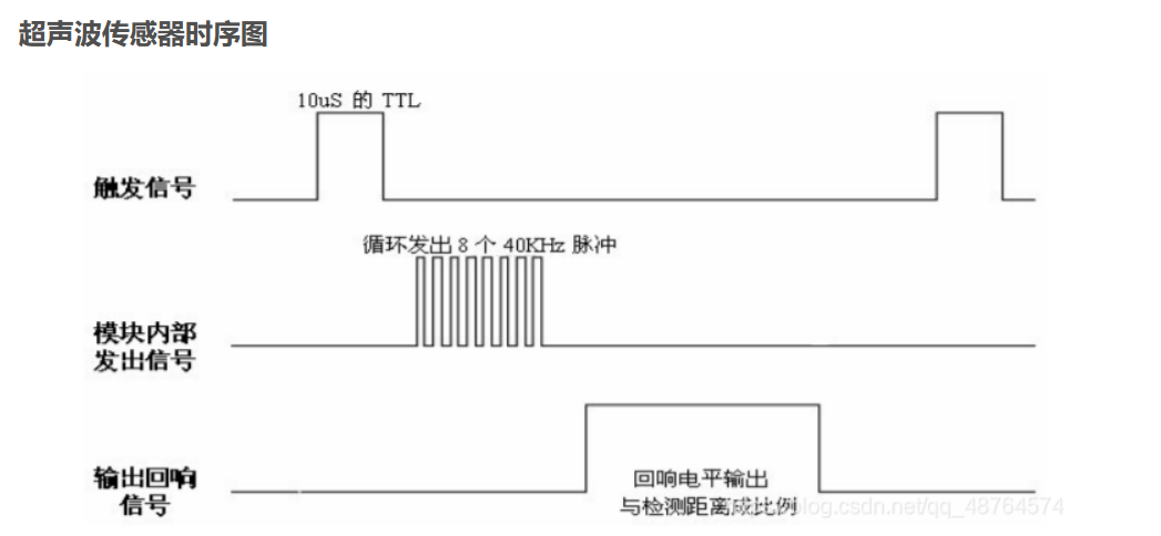 从上面的时序图就可以看到超声波模块是怎么使用的了: