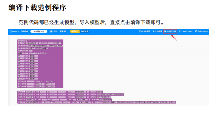 (5)编译下载范例程序,随后下载成功后按照需要的修改修改随后重新生成模型下载即可: