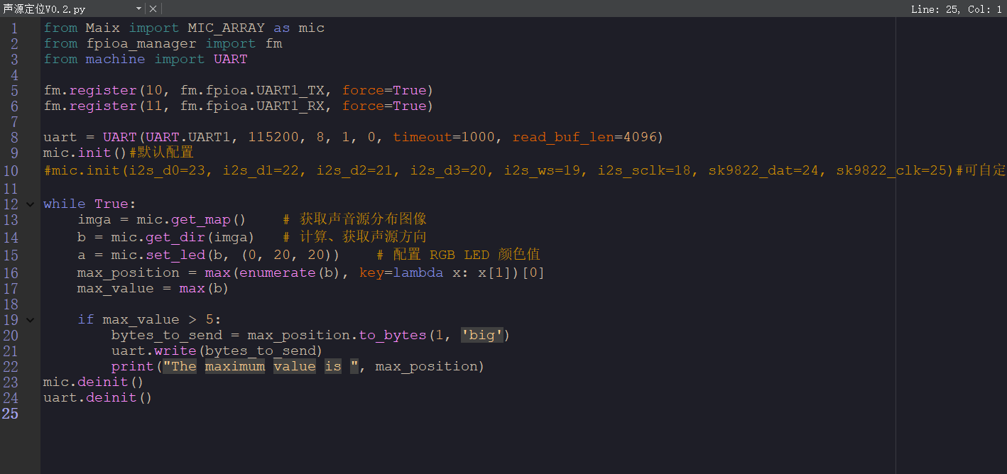 2.对声源定位例程略微修改下,给即将发出的数据限定一个最小值: