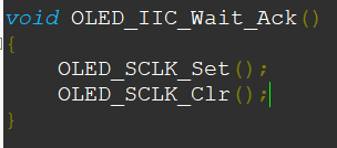 如图3在我们模拟出了起始位,8位数据,应答位,结束位后,分别按顺序调用这些个函数就是完整的IIC协议,上述就是两个实例,上面将起始位,8位数据,应答位,结束位按一个顺序分别排列,其中发送的数据0X78,0X00,0X40分别代表OLED的地址,即将写入命令,即将写入数据三种意思;这些数据已经不属于IIC协议的范畴了,不同但符合IIC协议的设备这几个值是不一样的;通过上面的函数写入命令,下面的函数写入数据,OLED就能正常接收到我们发送过去的数据了。