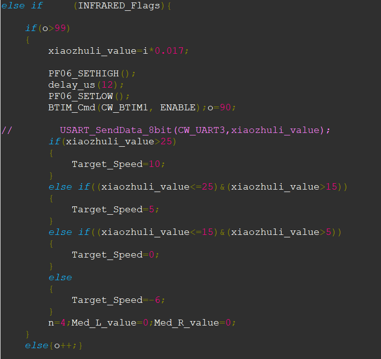 3.思考避障模块在程序中的逻辑嵌入:前面已经驱动过了这里就是完善下测距的逻辑,与红外的配合。