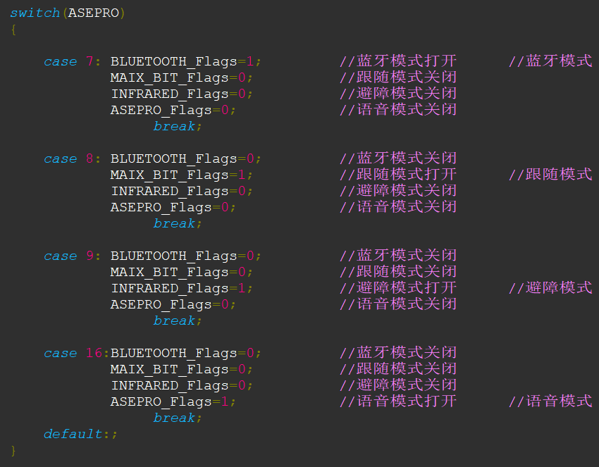 3.通过语音模块的接收数据来确定此时模式,并且在另一种模式没有来之前,是不会被改变的。