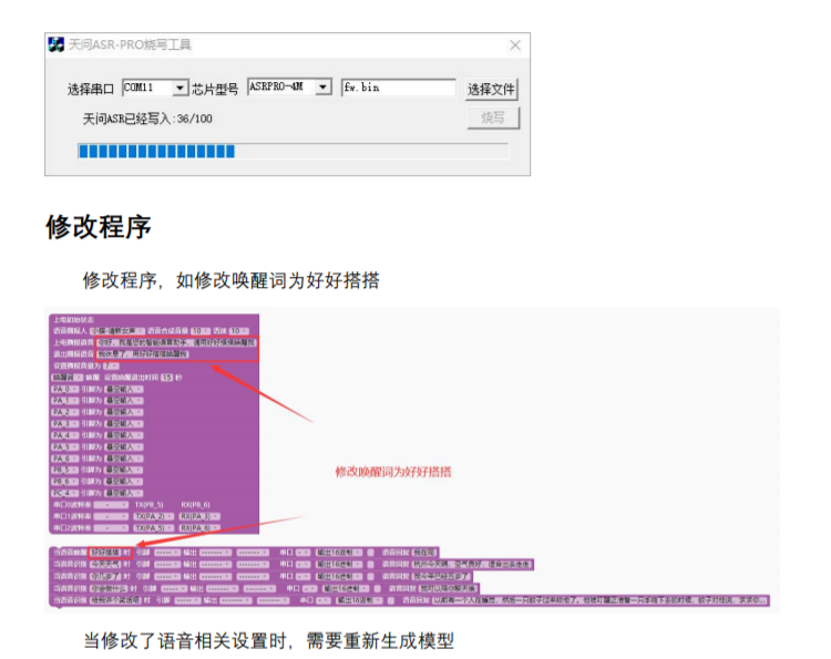1.语音模块选型及其编程方法:使用的语音模块是ASRPRO,存储达4M,自定义词条可达300个;编程环境是天问block,支持图形化编程;后面详解。