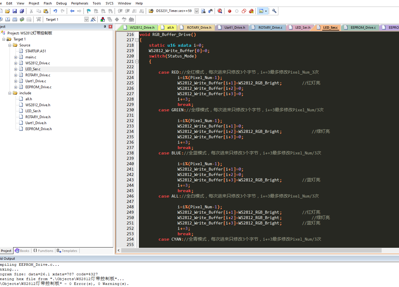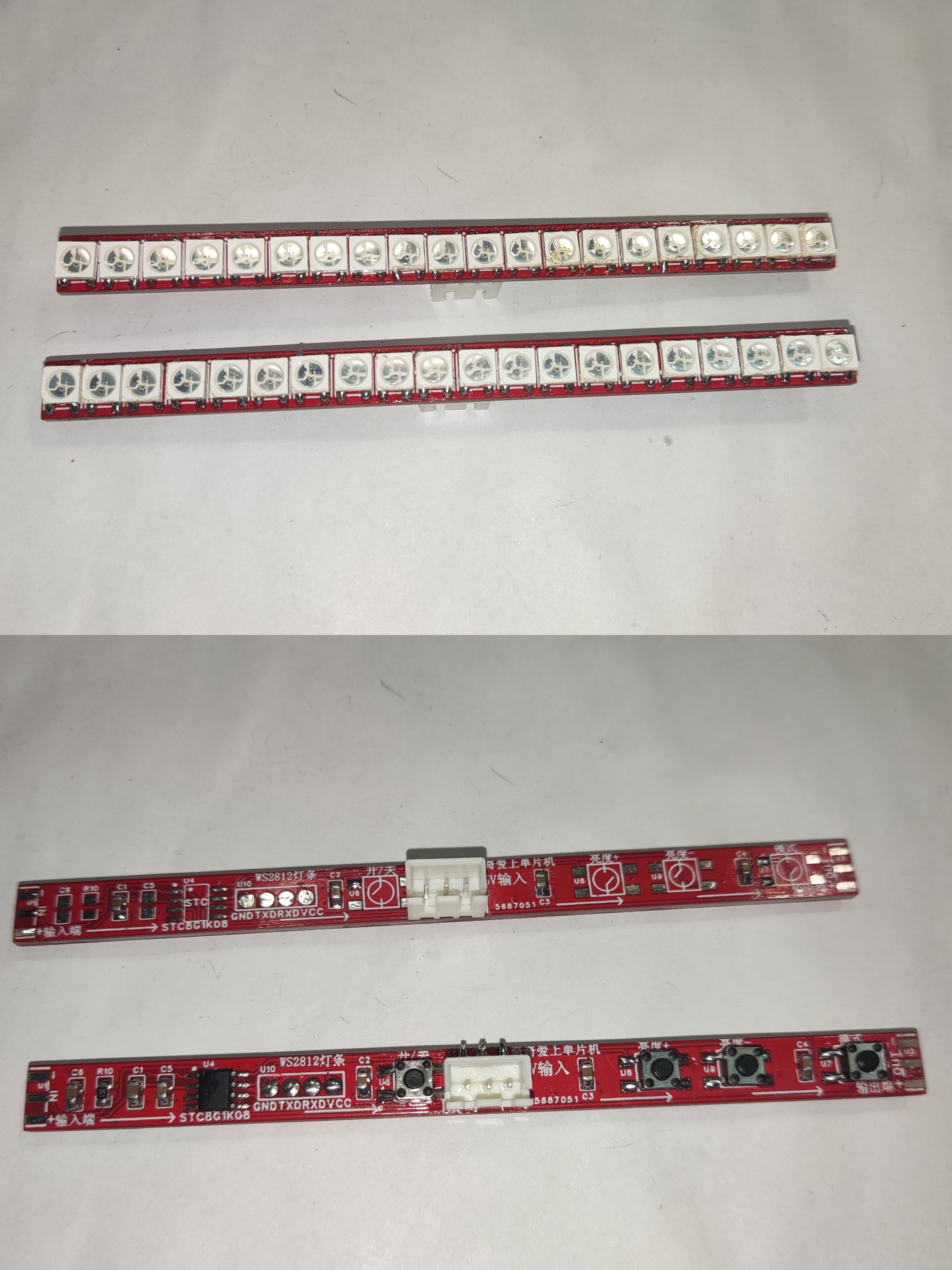 WS2812B+STC8H1K08单片机,默认可接1-250颗WS2812灯。有多个颜色切换,呼吸灯,跑马灯。两个按键控制亮度,一个按键切换模式,一个按键开灯和关灯,具有掉电存储上一次状态功能