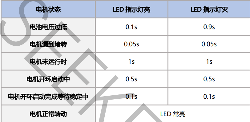 - 支持低压检测,低于阈值后关闭电机避免过放损伤电池