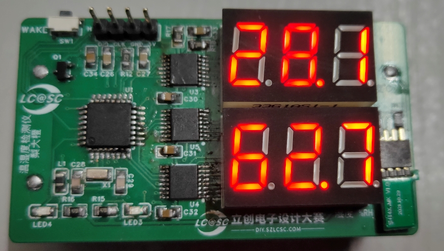 pcb板在设计的时候没有考虑到数码管SHT40的距离,管座与数码管的距离太小,导致在插入sht40时,与数码管稍微的摩擦,虽不影响使用。