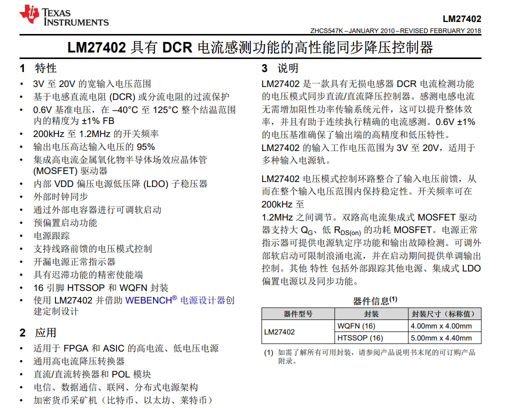 - 10V-18V宽输入,0.8V-5.5V宽输出电压范围。