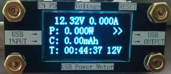 显示屏采用一颗OLED12864,我这款是单色的,实际上用双色的显示效果可能更换,这样第一行的电压电流将是不同的颜色。