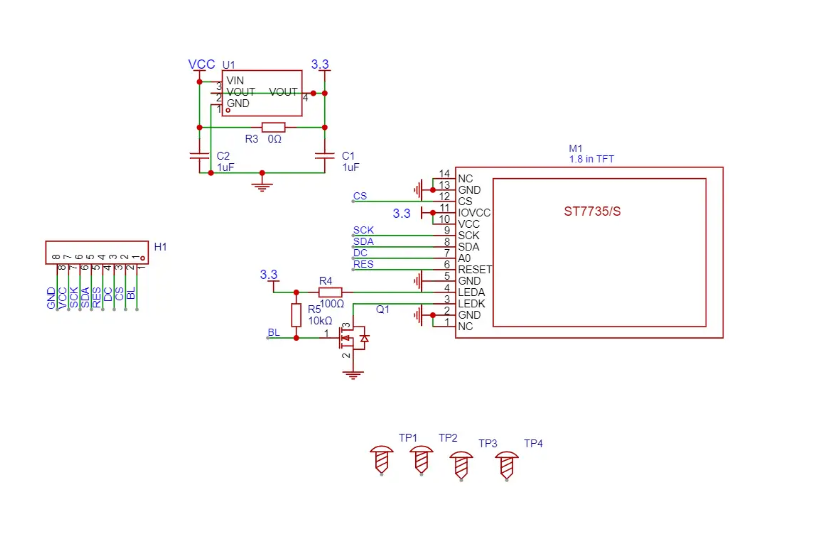 六,屏幕采用TFT 1.8寸,128*160分辨率 驱动芯片ST7735S 14pin爆接款,自已做了个底板,改成8脚 4线SPI串口屏