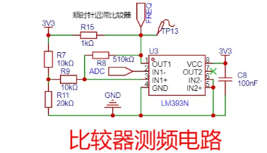 三,比较器测频电路:使用LM393来使ADC达到一下的数值才会触发主控去处理ADC信号。